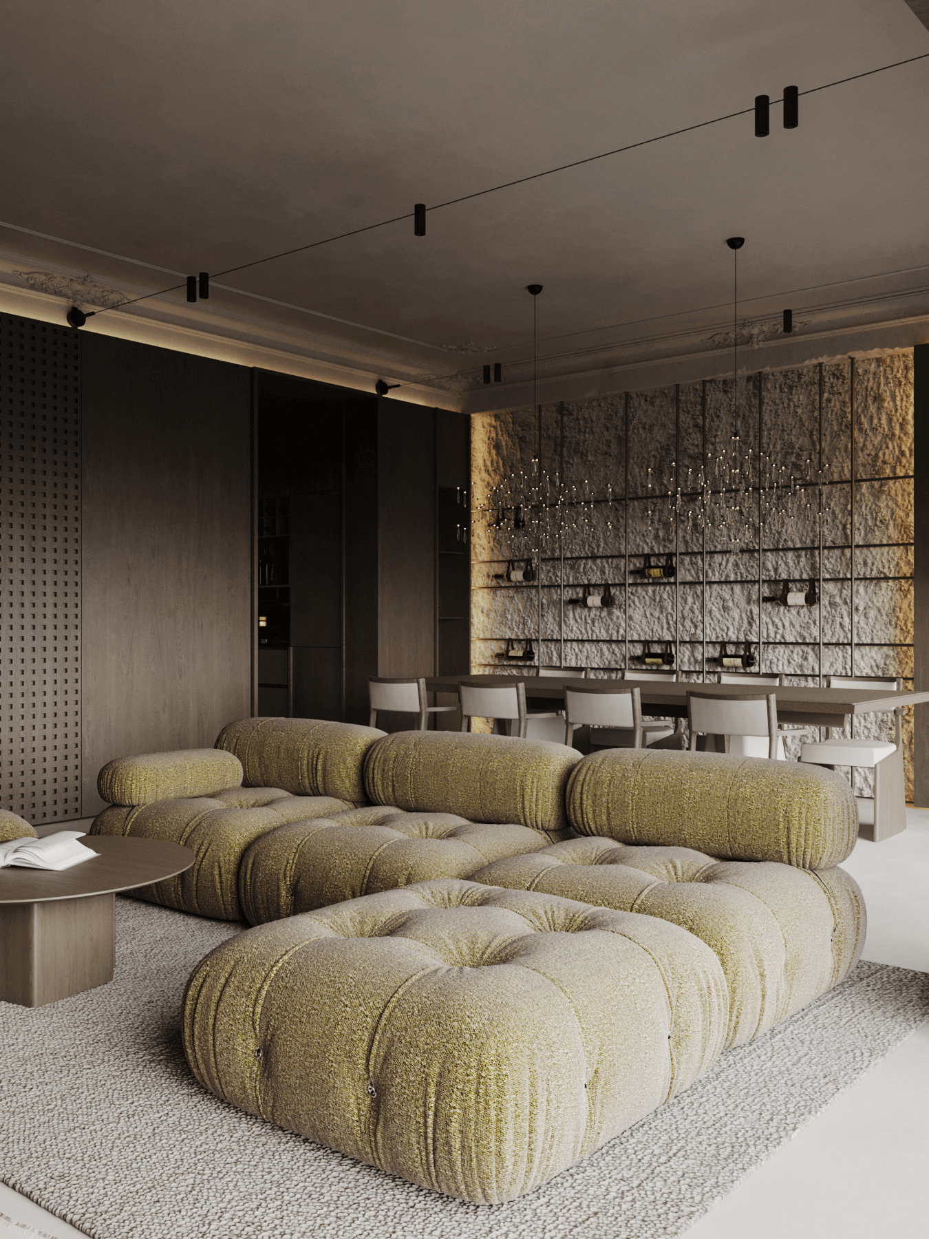 Сдержанная палитра и природные материалы создают ощущение устойчивости и покоя, а лёгкий запах вина — почти ощущается сквозь экран.