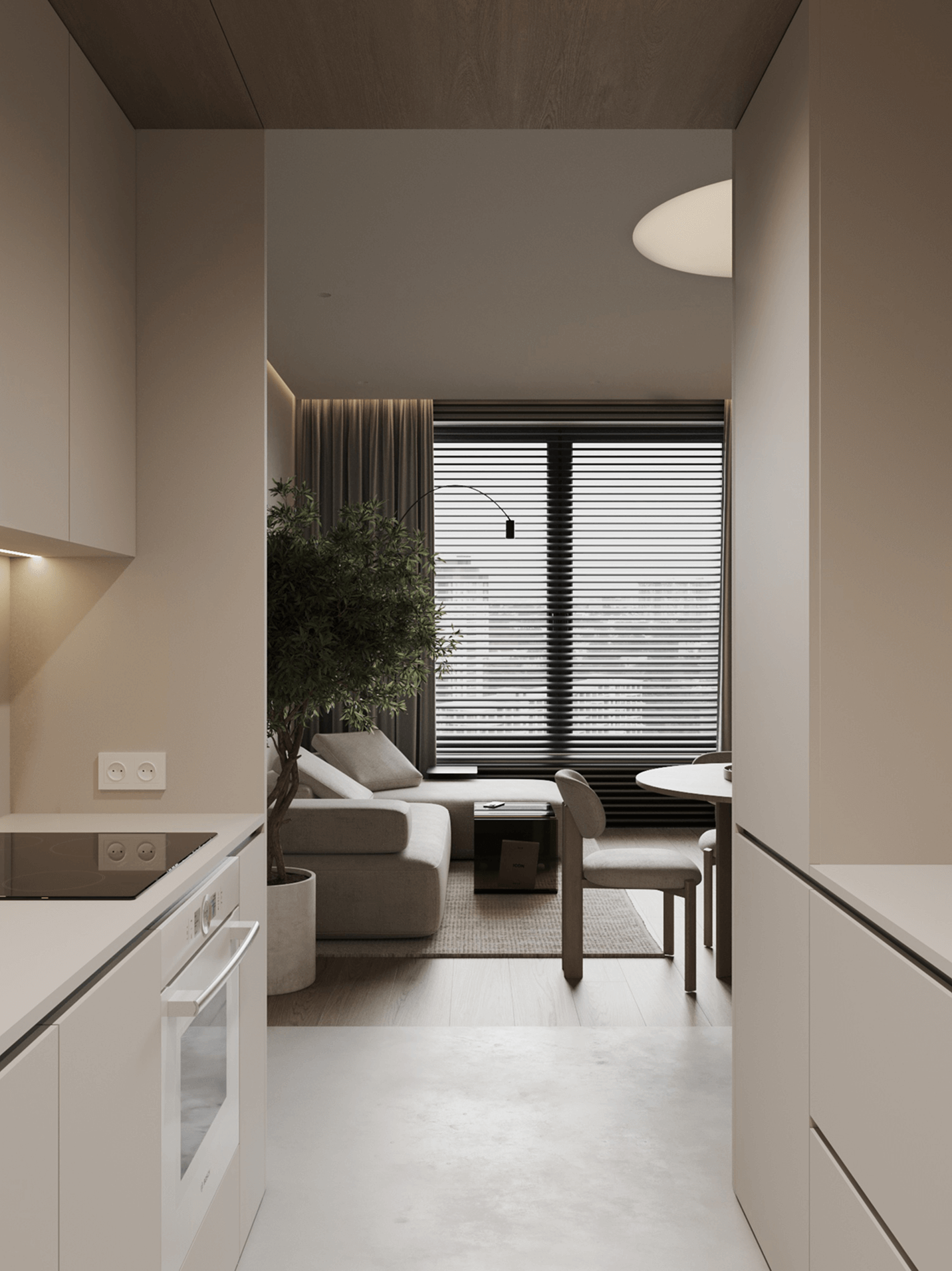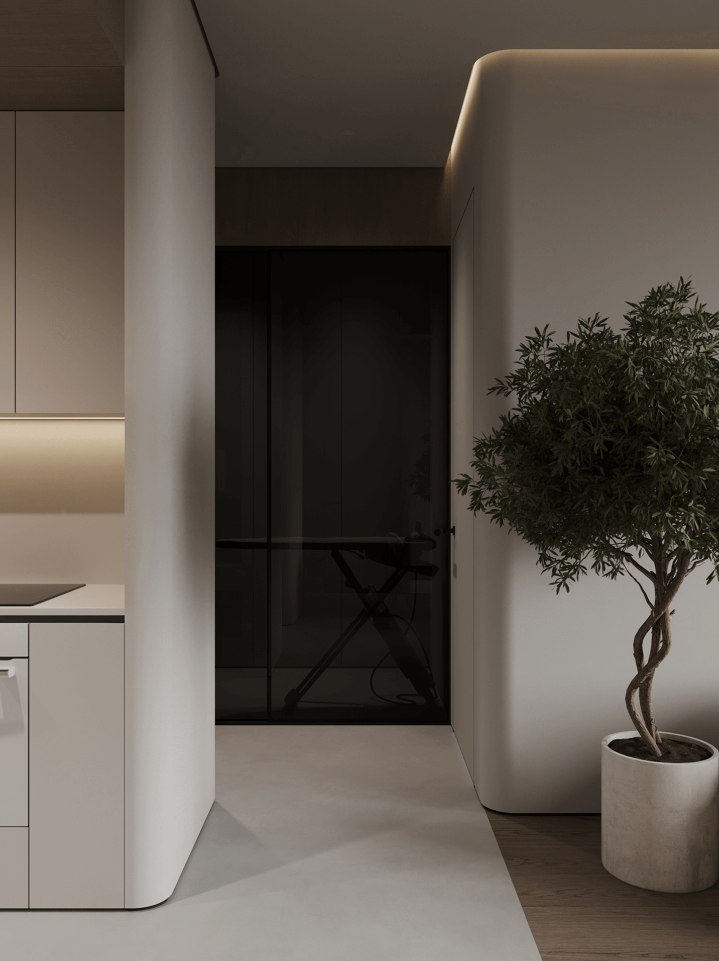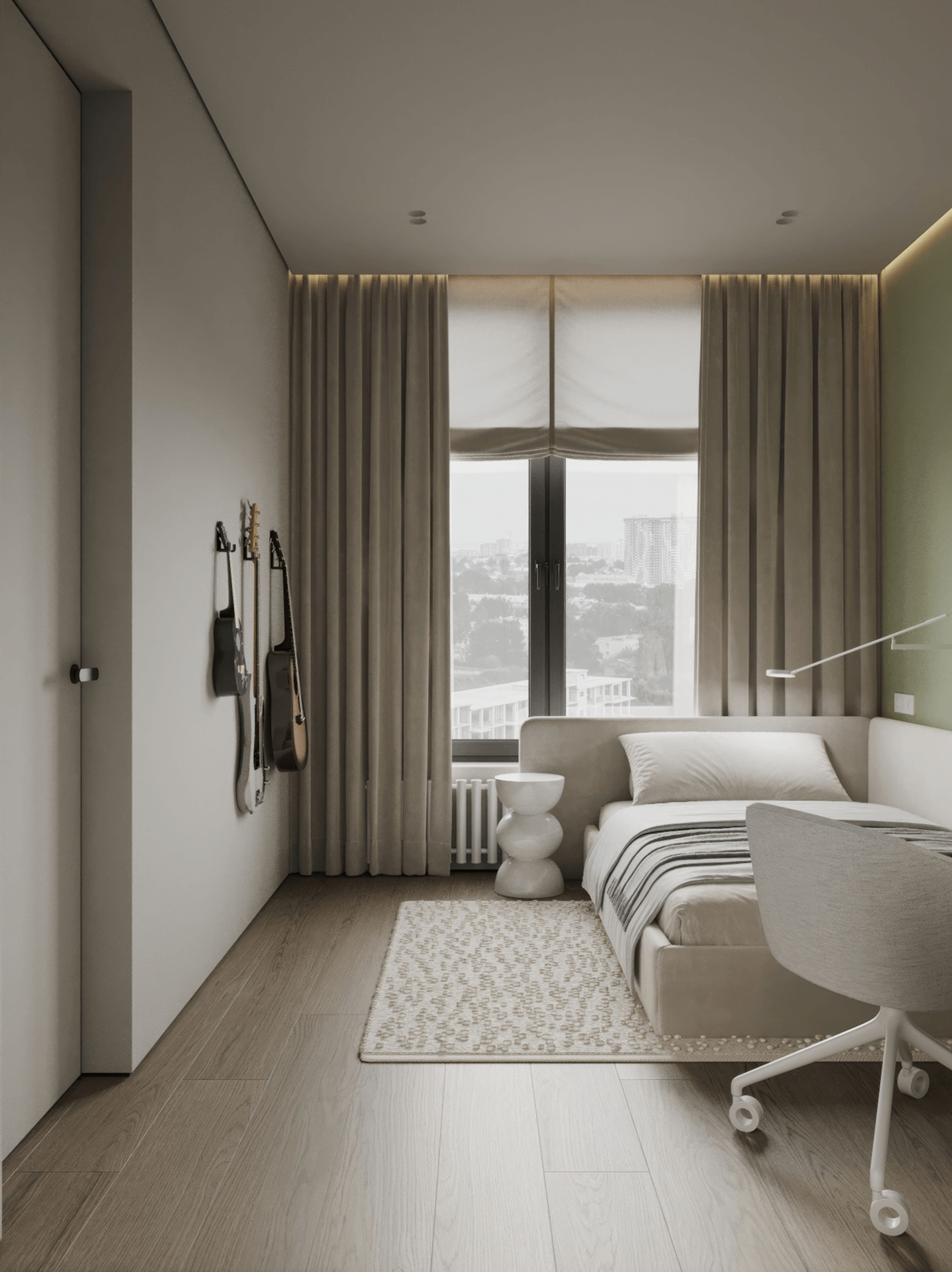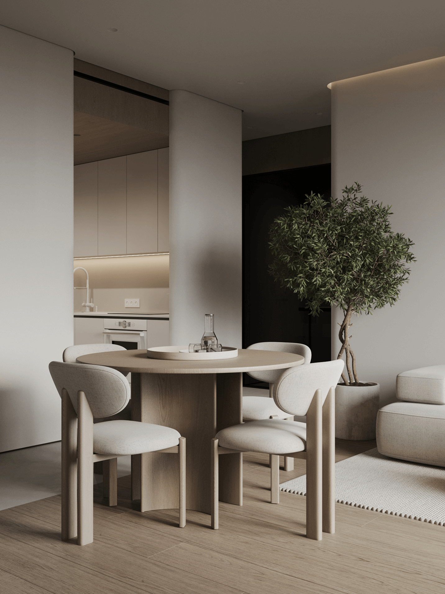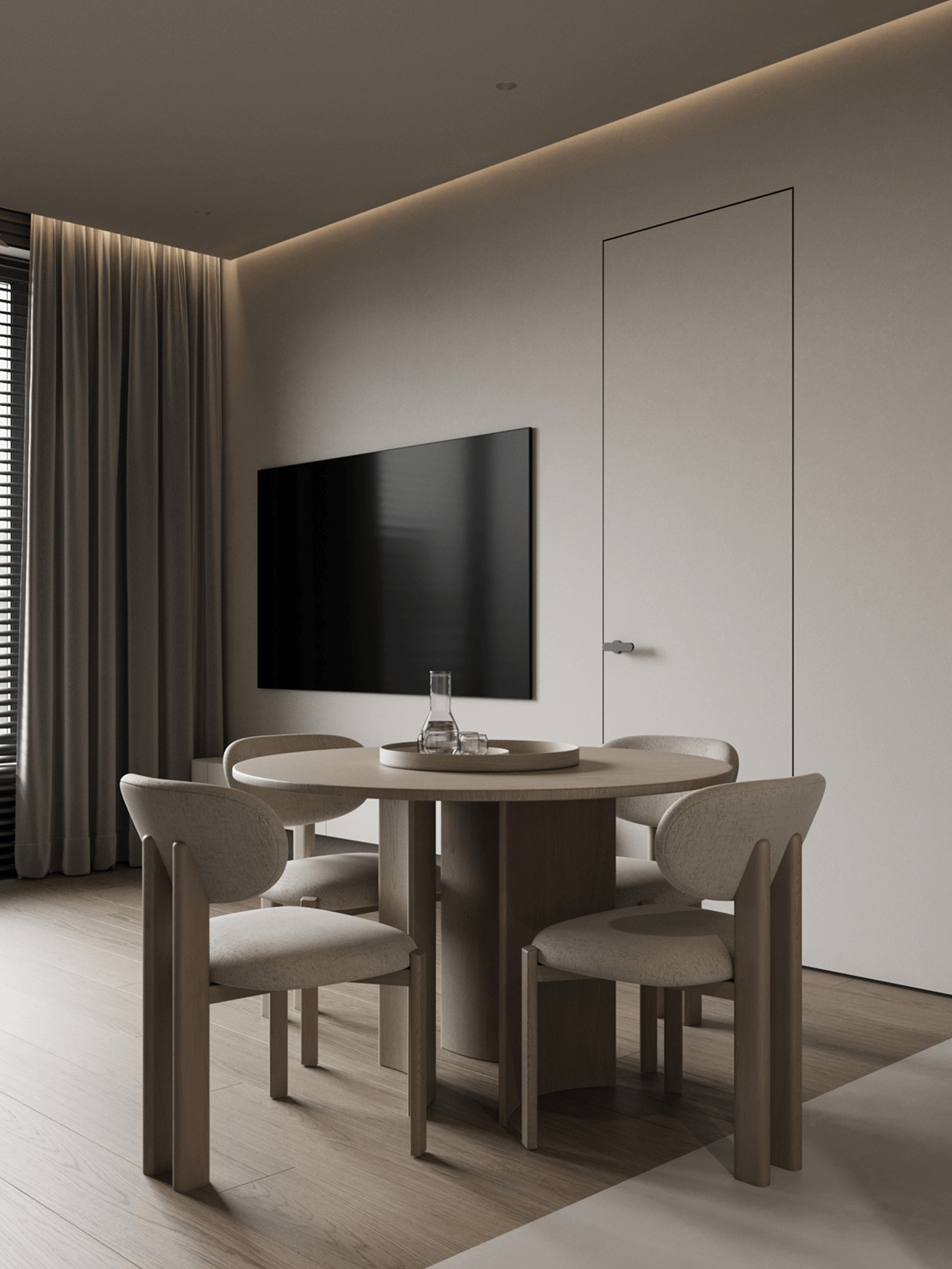 Проект представляет собой уникальное сочетание элегантного минимализма и домашней, умиротворённой атмосферы.