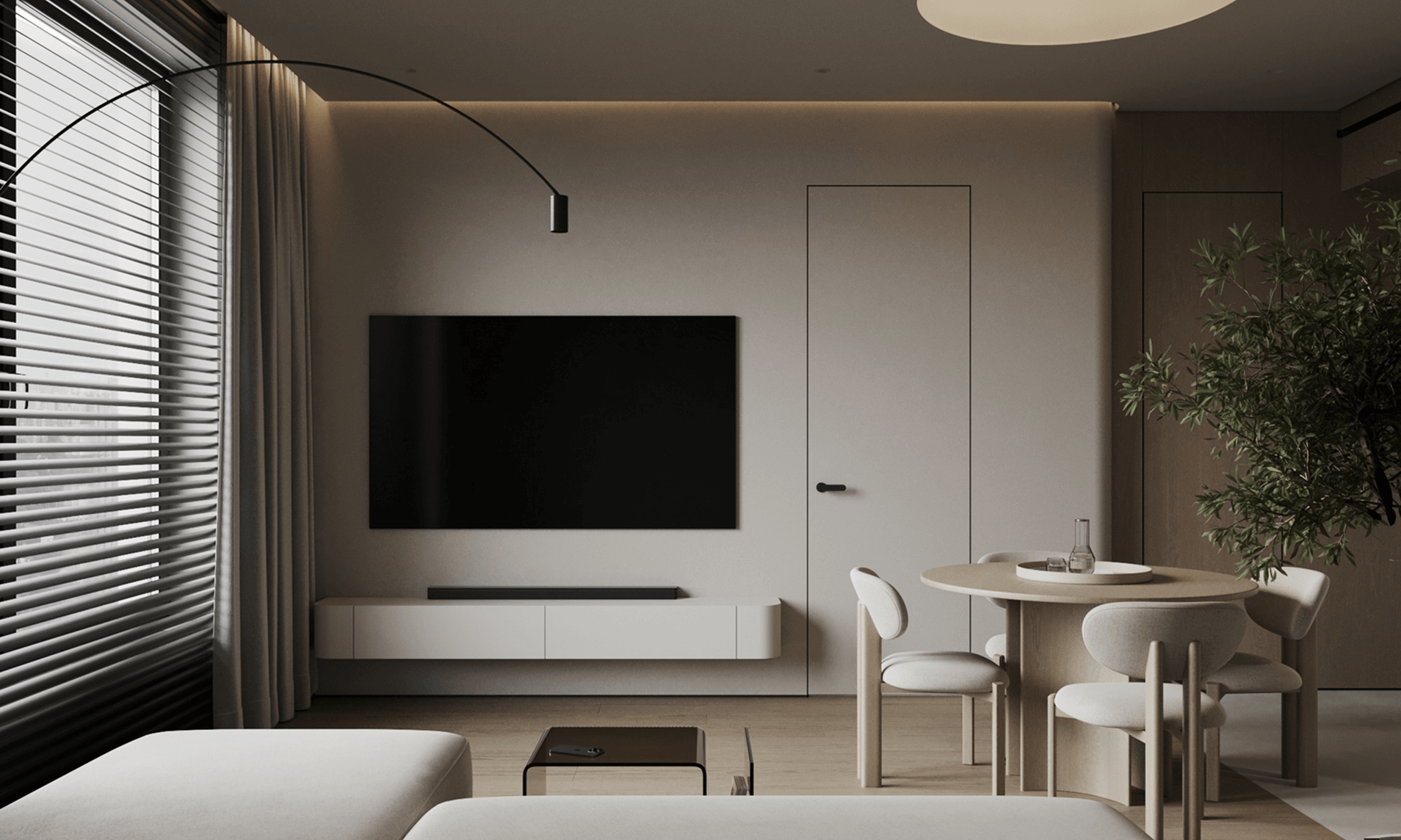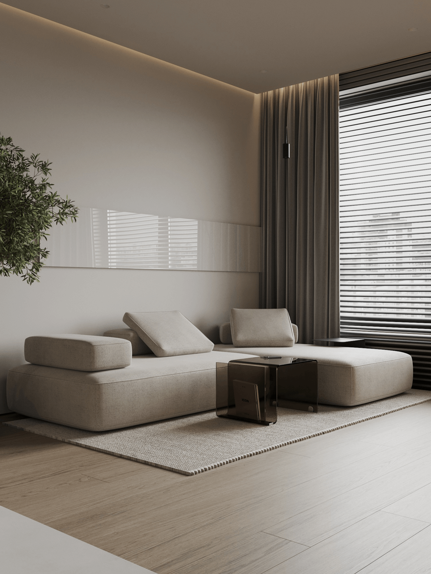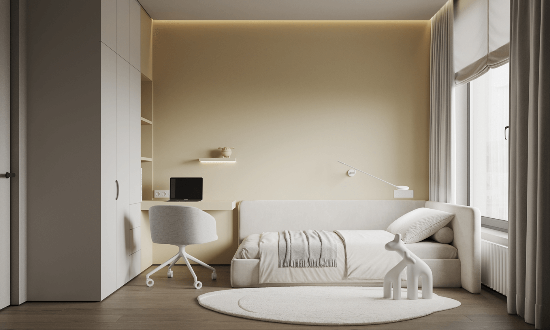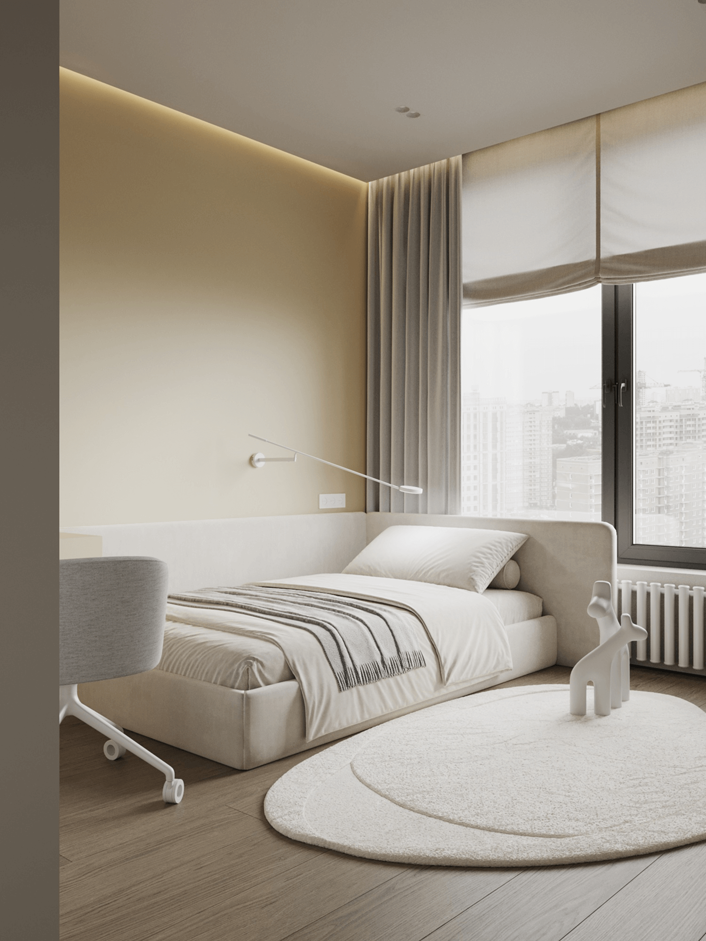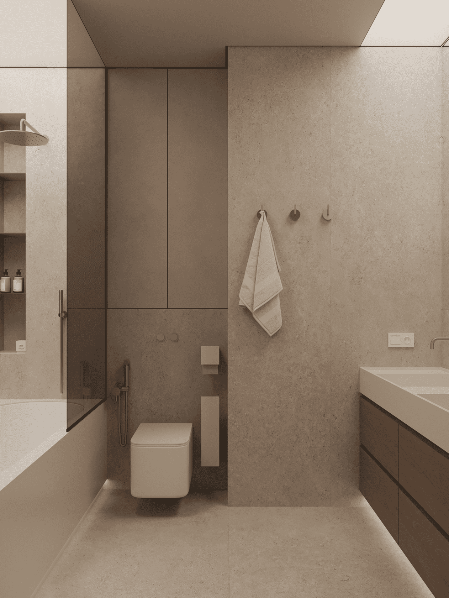Проект представляет собой уникальное сочетание элегантного минимализма и домашней, умиротворённой атмосферы.